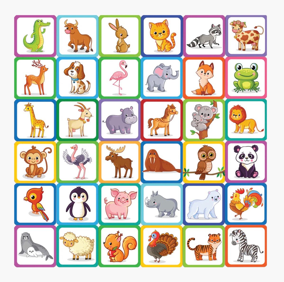 لعبة مفضلة من طفولتك تم تجديدها مرة أخرى! قم بمطابقة أزواج الحيوانات لشحذ ذاكرتك أثناء الاستمتاع بهذه المجموعة الملونة المكونة من 72 بلاطة بطاقة قوية.