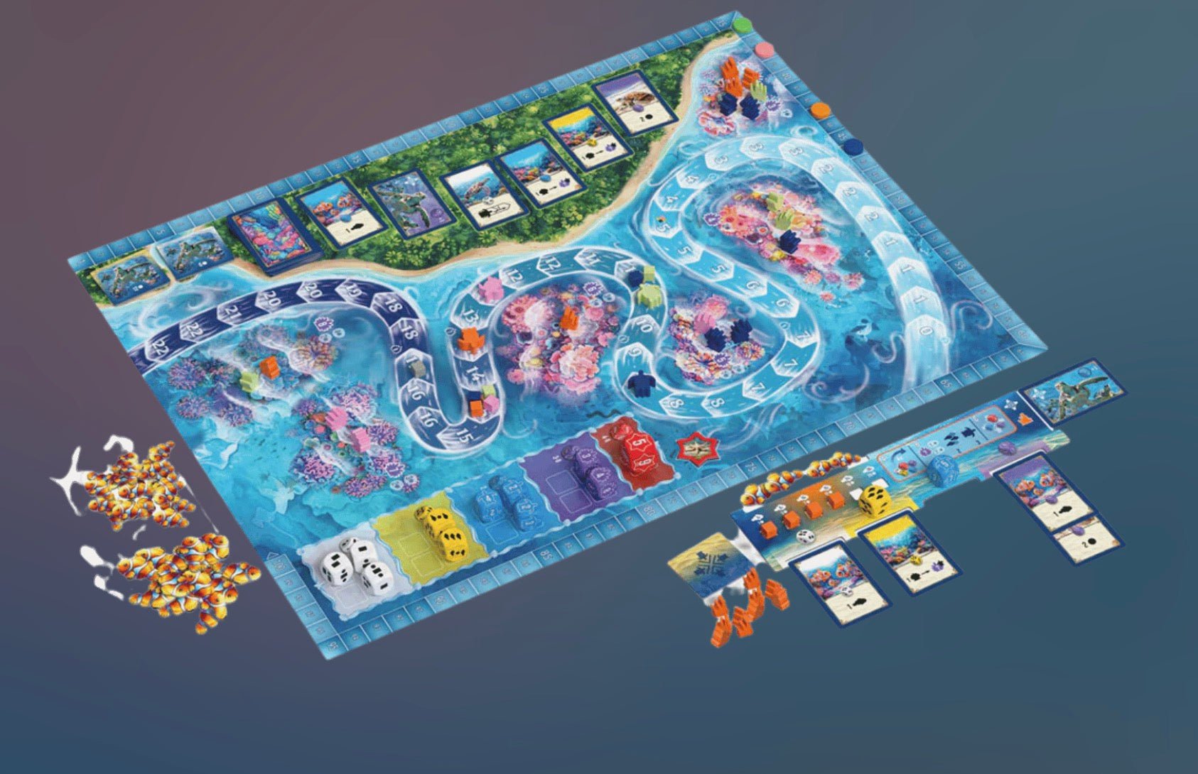 Off the east coast of Australia is an underwater superhighway, a warm stretch of ocean called the East Australian Current. Here, your sea turtles swim amidst beautiful flora and fauna. Each round you choose dice which offer various advantages in this diverse ecosystem: select food cubes to feed ever-growing schools of fish, settle corals onto reefs, swim further down the current with your sea turtles or choose to be the first player to pick dice in the next round.