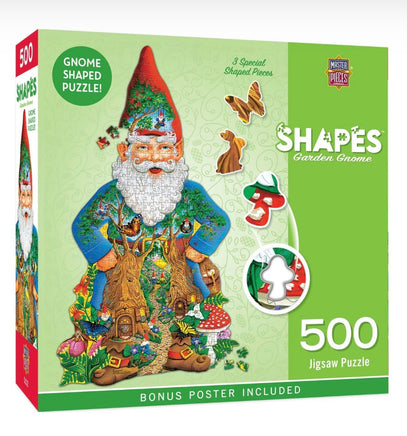 لغز على شكل قزم الحديقة من مجموعة MasterPieces، مكون من 500 قطعة. يمتلئ قزم الحديقة هذا بكل الأسرار المخفية في حديقته السحرية في لغز على شكل ممتع. يتضمن القالب الآمن ثلاث قطع لغز ذات أشكال خاصة تتعلق بحديقة القزم السحرية. لتقليل تأثيرها على بيئتنا، فإن اللوح الخشبي المستخدم في هذه الألغاز مصنوع من مادة معاد تدويرها بنسبة 100%.
