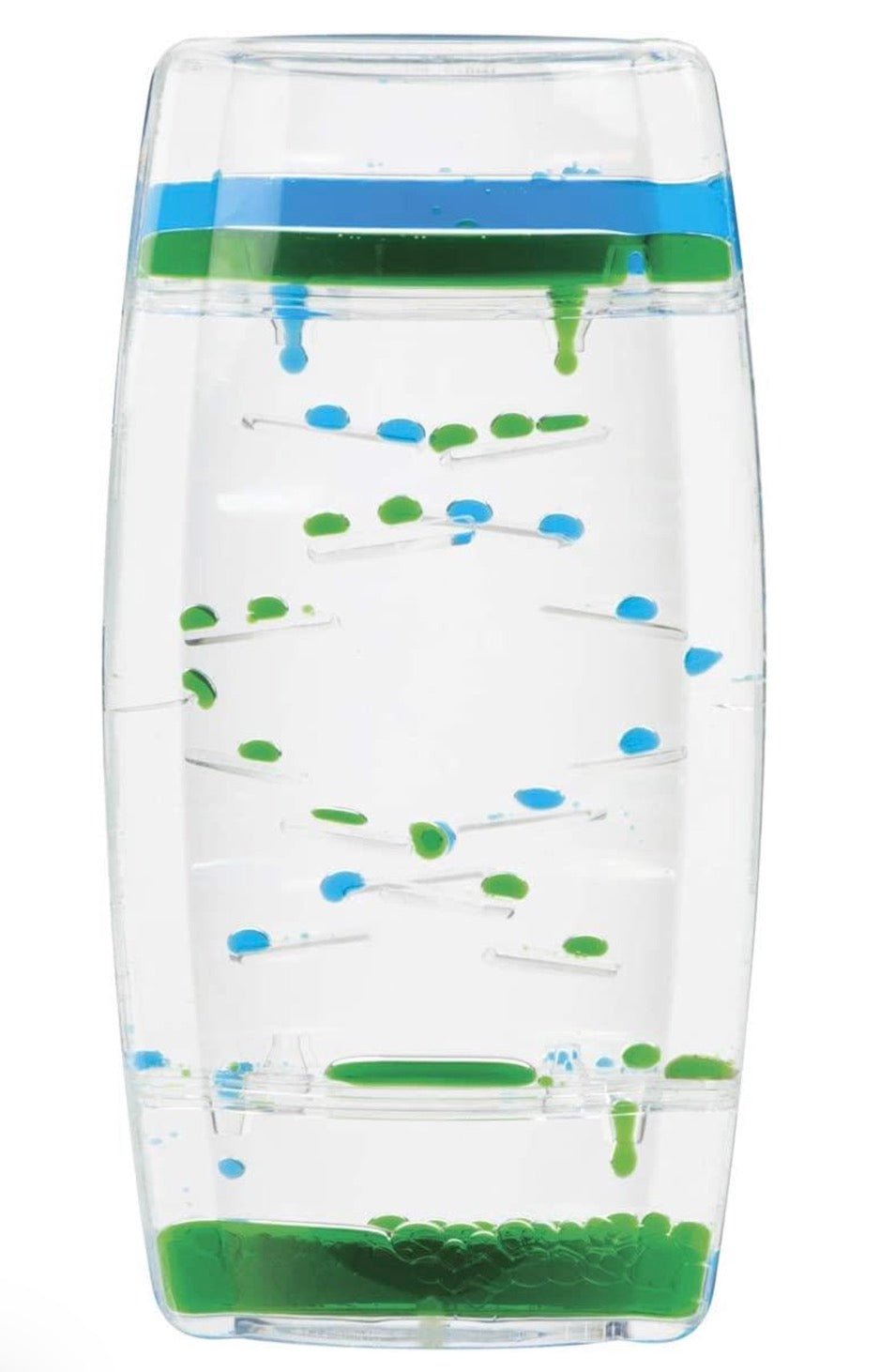 The Toysmith Bubble Motion Tumbler displays come in a variety of assorted colors. Some colors that may be offered include blue, green, pink, and purple. This is not a toy. Ideal for display or decoration on flat surfaces. High-quality, durable plastic construction contains moving liquids and is built to withstand constant handling and resist cracks. No assembly is required. This soothing visual display requires no power or mechanical parts and can provide hours of entertainment and visual relaxation.