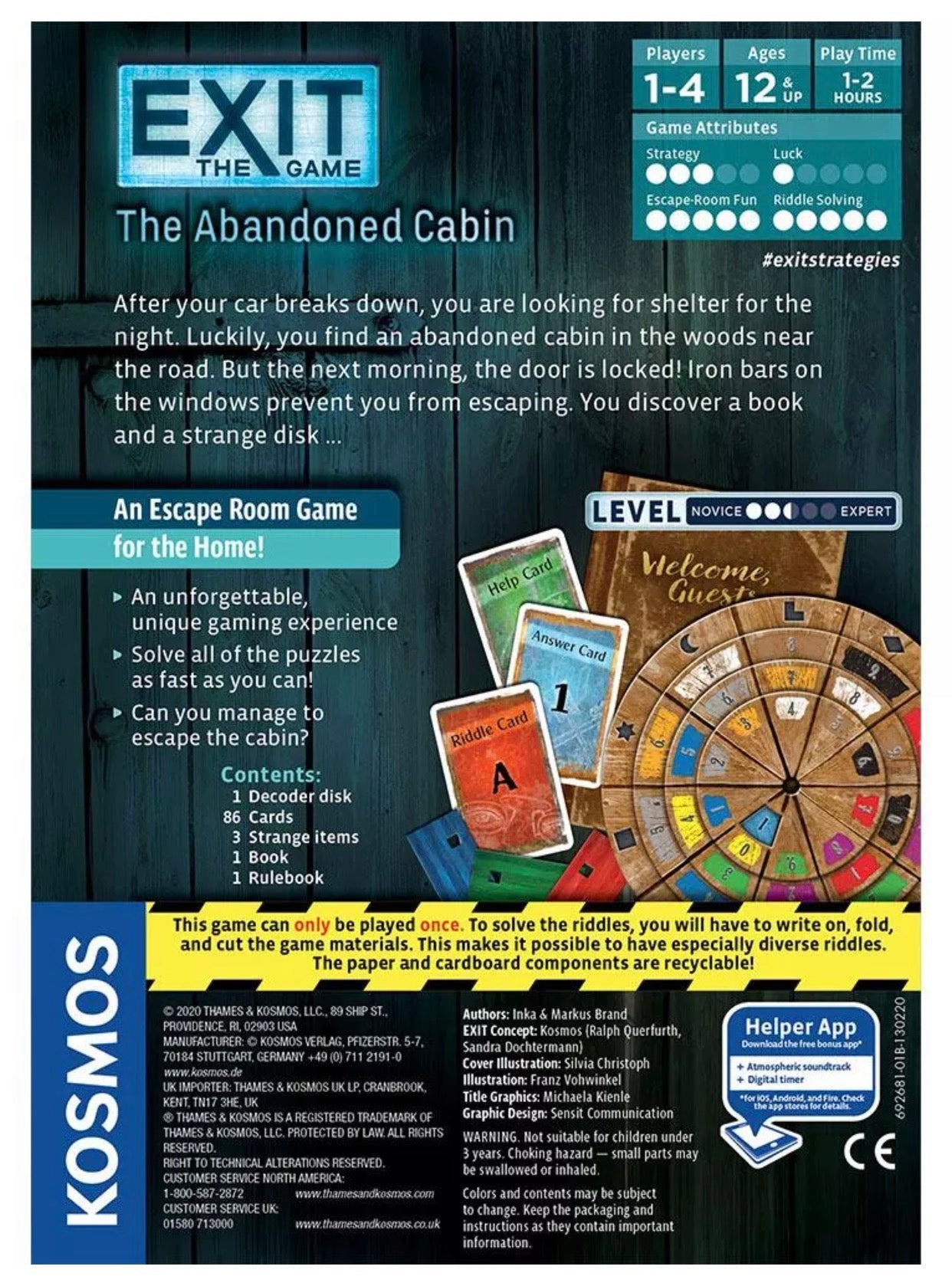 Play Time & Difficulty Level: This EXIT game, for ages 12+, takes 1-2 hours to complete, and has a difficulty rating of 2.5 out of 5.