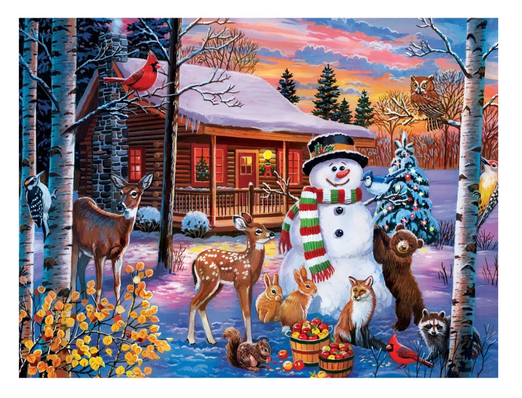 • Forest friends come out to play with Mr. Snowman.