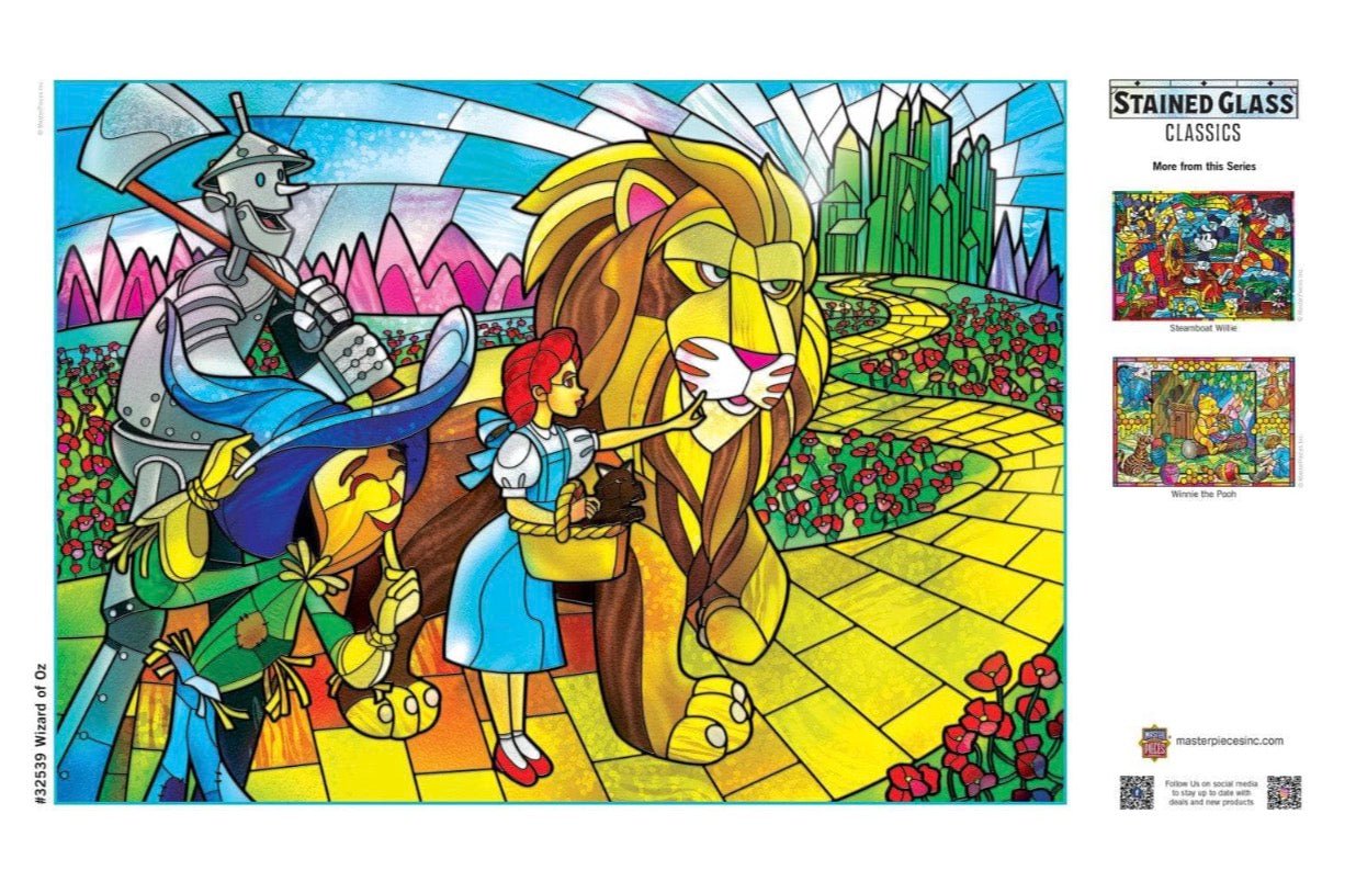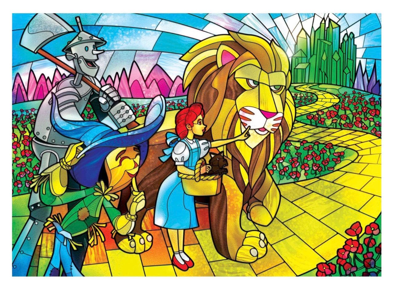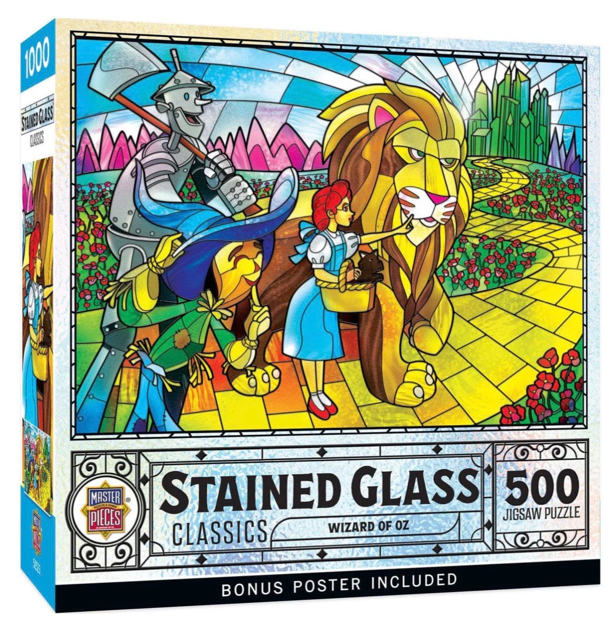 Follow the yellow brick road like never before with our dazzling 500-piece Stained Glass Wizard of Oz Puzzle, where Dorothy and her friends are brought to life in a stunning stained glass design! This puzzle beautifully captures Dorothy, the Scarecrow, the Tin Man, and the Cowardly Lion as they stroll toward the glowing Emerald City, framed by vibrant stained glass-style panels that evoke the magic and wonder of Oz. The intricate stained glass effect adds a unique, artistic touch to the iconic scene, with radiant colors that make every detail—from the shimmering yellow brick road to the towering green spires of the Emerald City—shine like a true masterpiece. Each piece adds to the beauty of the design, creating a window into the world of The Wizard of Oz that’s both fun to complete and stunning to display. Crafted from eco-friendly materials, this 500-piece puzzle offers an immersive, enjoyable experience for fans of all ages. Piece together the magic and step into Oz with this extraordinary work of art!