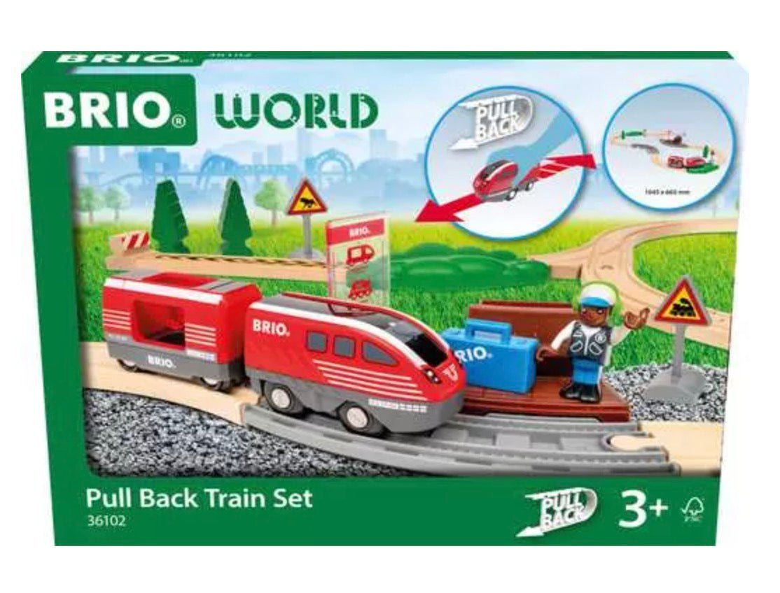 Keep the fun going with the Pull Back Train Set. Powered by 100% toddler energy, this toy train needs no batteries to bring big smiles to little faces. Let the passenger board at the station, draw back the red train and watch it go. When it slows down, just pull it back again for more action - no tears in sight. With easy-to-use functions and classic BRIO magnets, this countryside-themed set is a great addition to any BRIO World collection that brings endless joy for your little engineers.