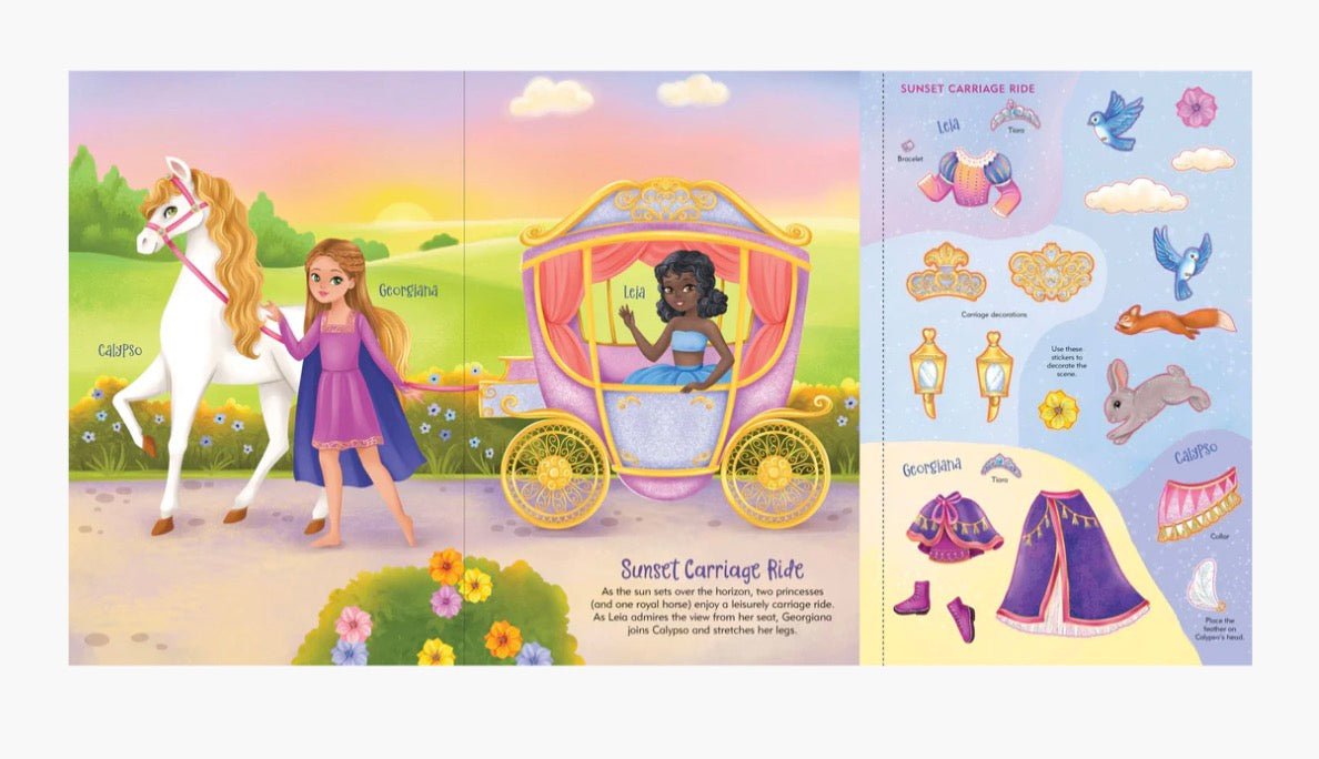 - يحصل الأطفال على فرصة ارتداء 20 أميرة في كتاب الأنشطة الملصقات الجذاب هذا الذي يشجع الإبداع واللعب الخيالي!