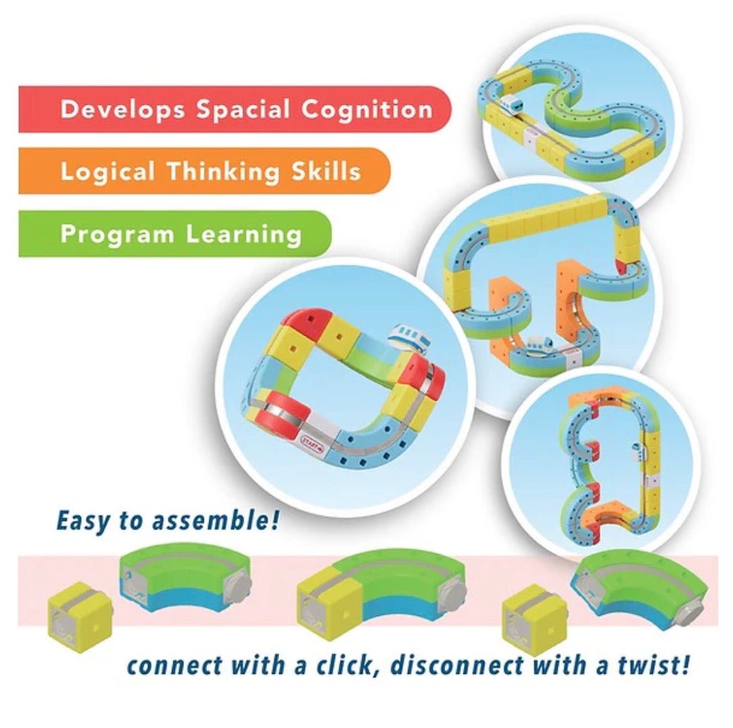 The Magnetic Monorail Deluxe Set’s expanded block collection allows for more intricate and complex track designs. Create multi-level routes, loops, and imaginative twists, while the mini trains glide effortlessly along the tracks for an engaging and dynamic play experience. The Magnetic Monorail Deluxe Set features 64 pieces and 2 mini trains for advanced monorail fun. Build complex, customizable tracks with easy snap-together blocks and enjoy dynamic, upside-down train action powered by magnets.