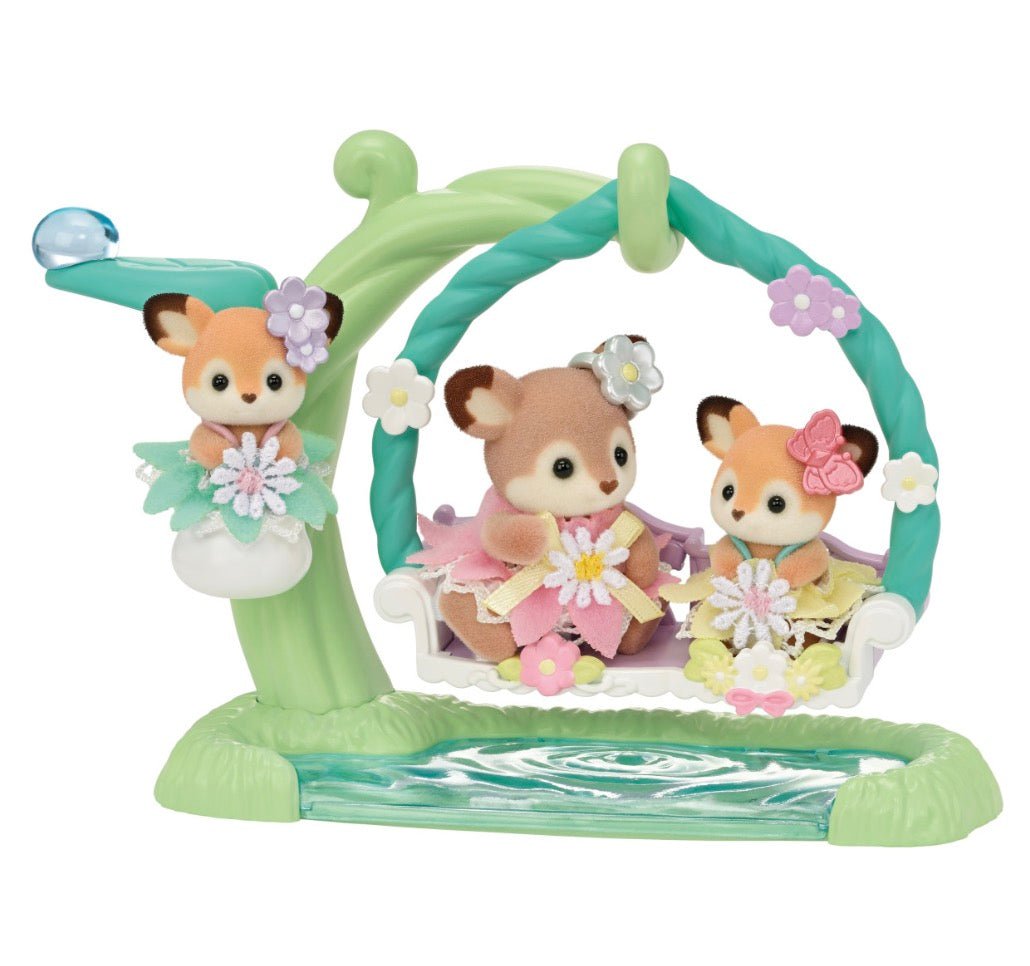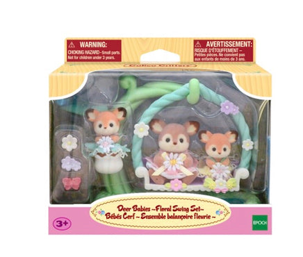 - The Deer family have adorable big ears. This set contains the Deer baby and cradled babies in matching floral outfits with an ivy swing and lily of the valley cradle.