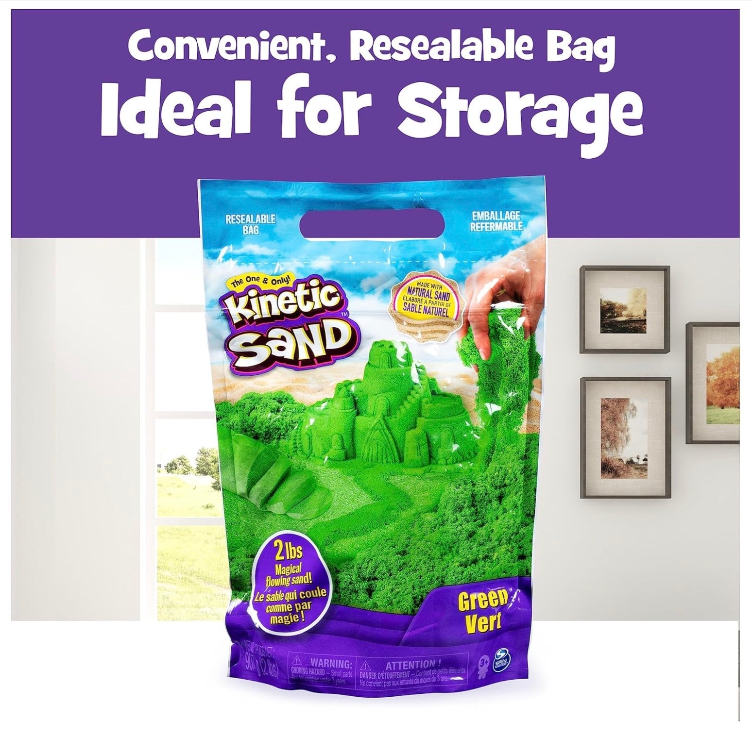 Mix, mold, and create anything you can imagine with the Spin Master Kinetic Sand, the original magical, moldable, and mesmerizing sand. It flows through your hands and never dries out so you can play again and again. Squish it, mix it, cut it or mold it: the creative possibilities are endless. The unique Kinetic Sand formula makes it easy to shape and mold anything you can imagine. Comes in a convenient resealable bag, perfect for containment and storage. Create again and again and let Kinetic Sand flow through your hands: it's so satisfying, you won't be able to put it down. Kinetic Sand is made from natural sand and is wheat-, gluten- and casein-free.