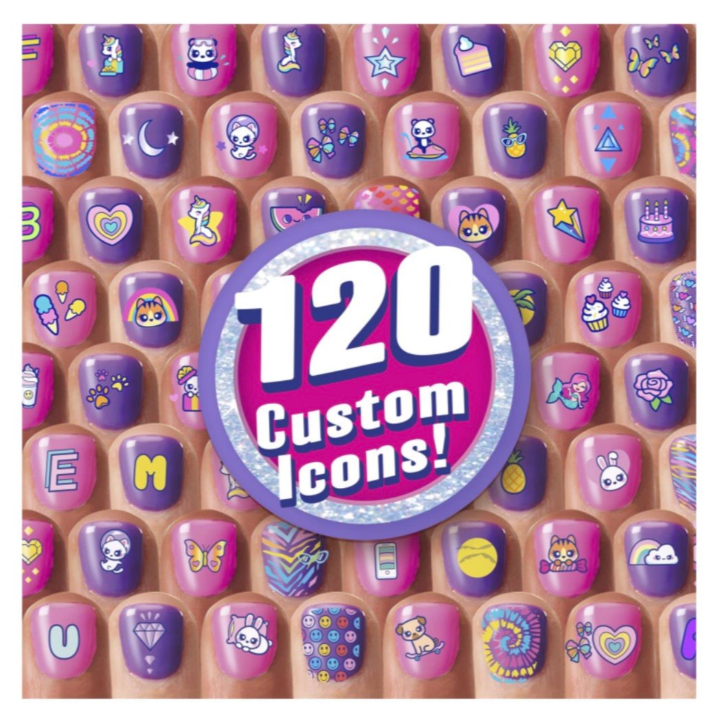 Scroll and stamp mani-pedis that are totally you with the Cool Maker GO GLAM U-nique Nail Salon! This at-home nail design kit lets you stamp and style your nails any way you want. It has everything you need to design up to 250 nails of any size, including five design pods, nail polish, a built-in dryer and storage! It even features a removable stamper, perfect for glam on-the-go! Creating salon-quality customized manicures is fun and easy to do with this girls nail kit. Select a design pod and pop it into the machine. Next, paint your nails with one of the GO GLAM kids nail polish colors (two included), place your hand under the dryer, switch it on and wait five minutes for nails to dry. Use the viewfinder and dial on top of the machine to scroll through the pod`s different icons, and when you`re ready, insert your finger into the machine and press to stamp! With 120 unique icons to choose from, you can mix and match from the design pods to personalize your nails for the ultimate customization! You can even stamp custom messages like your name using the letter design pod! After you`ve designed your nails, paint on a layer of shiny top coat (included). And don`t forget to glam up your toes, too! Slide out the machine`s drawer, remove the stamper, separate your toes (separator included), and repeat the process! When you`re finished, store the design pods in the manicure kit`s base and place everything else in the storage space. Take the salon's portable stamper with you anywhere you go and GO GLAM with your squad! This all-in-one nail stamper kit is a great gift for girls and is the perfect activity for sleepovers, spa days, birthdays and more. Requires 4 AAA batteries (not included). For more ways to customize your style, look for the GO GLAM U-nique Refill Pack and create your own glitter tattoos with Shimmer Me Body Art girl toys (each sold separately)! Paint, scroll and personalize at home or on-the-go with the Cool Maker GO GLAM U-nique Nail Salon!