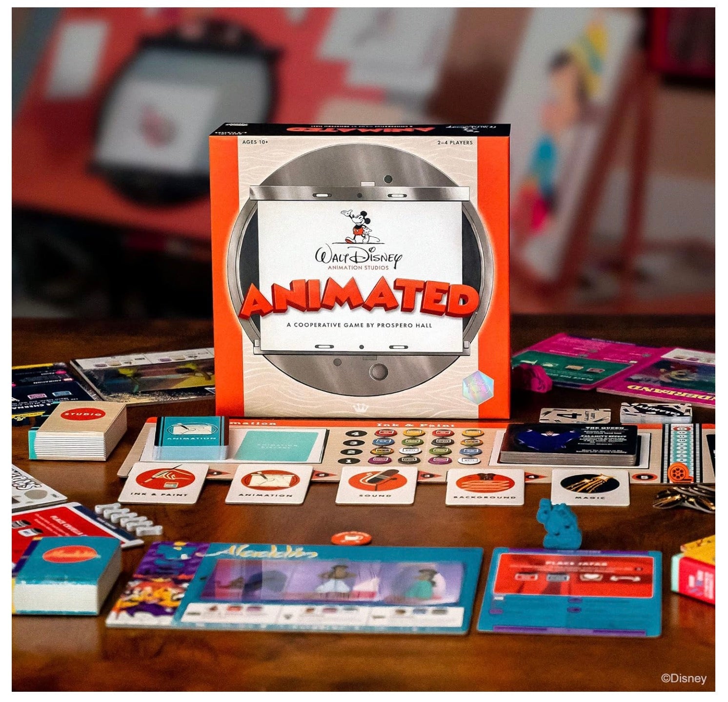 - Stunning components include full-color player boards, custom wooden tokens, and 15 transparent cel cards.