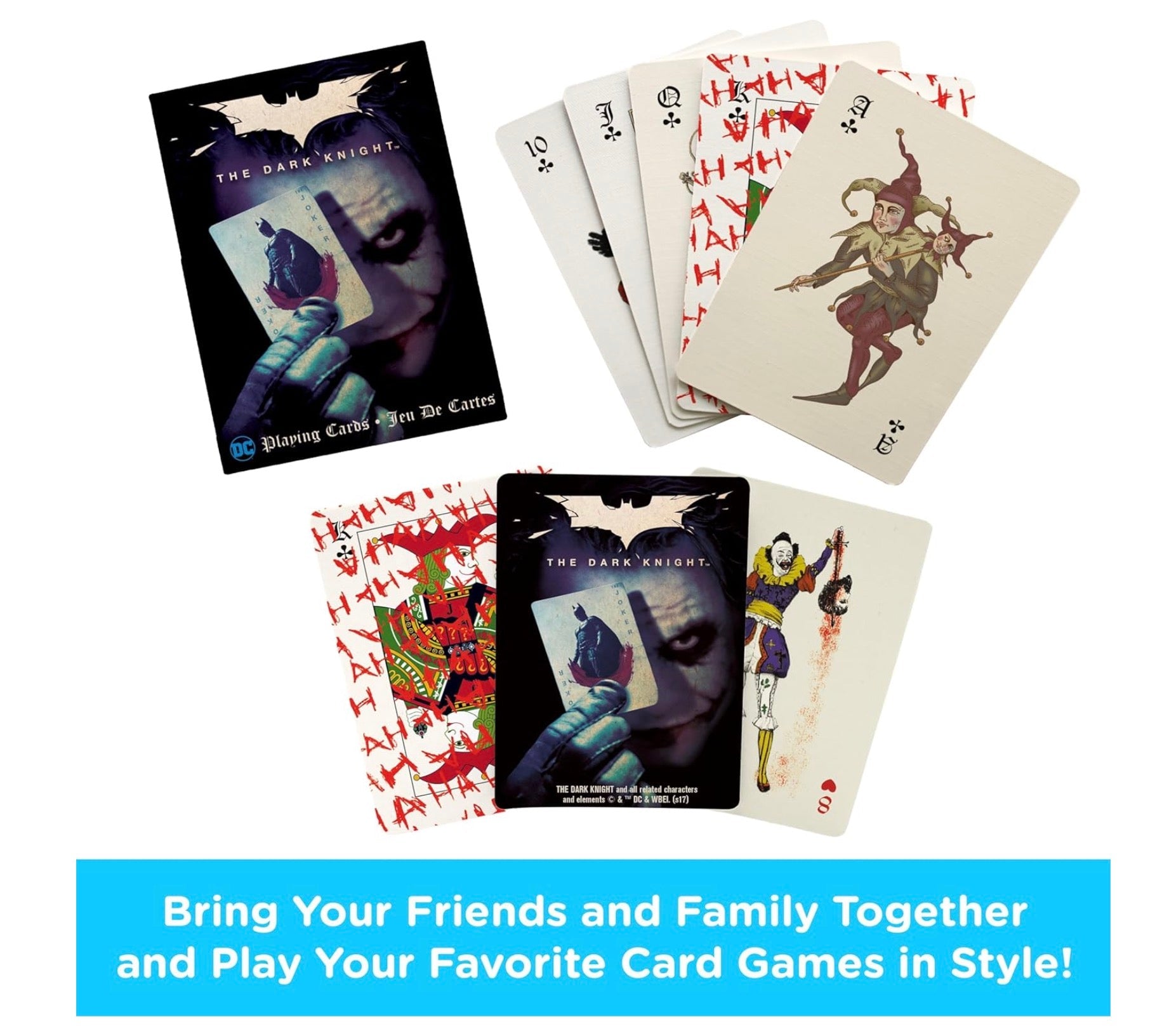 - THE JOKER DECK OF PLAYING CARDS: Play your favorite card games with friends and family as you put the psychotic mastermind front and center with this deck of Dark Knight Joker playing cards
