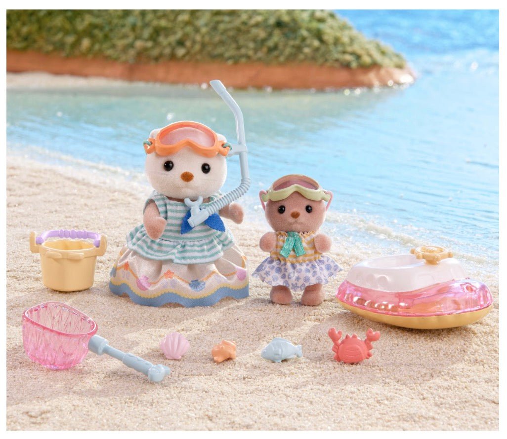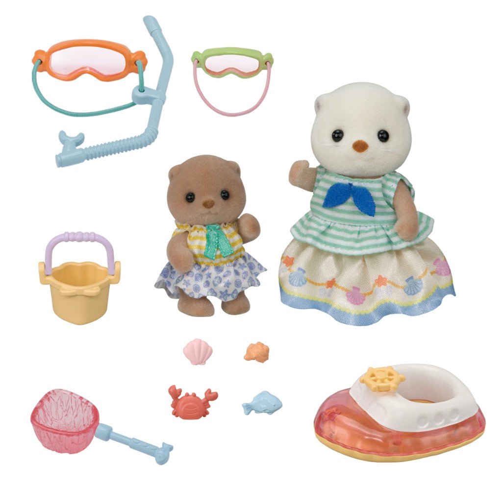 • The Sea Otter family are adorable round characters. This set includes the Sea Otter girl and baby with items for playing in the sea.