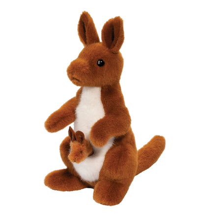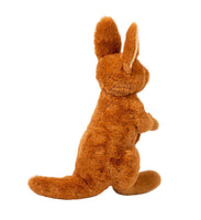 Full of bounce and fun, Kira the Kangaroo stuffed animal and her adorable Joey finger puppet will bring you the excitement of an Outback adventure! Sitting tall on her oversized hind feet, Kira gazes out over the arid landscape and keeps an eye out for Dingoes. Her long tail serves her well for balance when she goes bounding over the red dust of the desert. Crafted in luxurious plush of a similar hue, our cuddly marsupial mother is soothingly soft and ideal for hugs. Shiny, dark eyes and stitched facial details bring this endearing pair of plush ‘Roos to life. Tag along with them on their journey and see Australia as you never have before!
