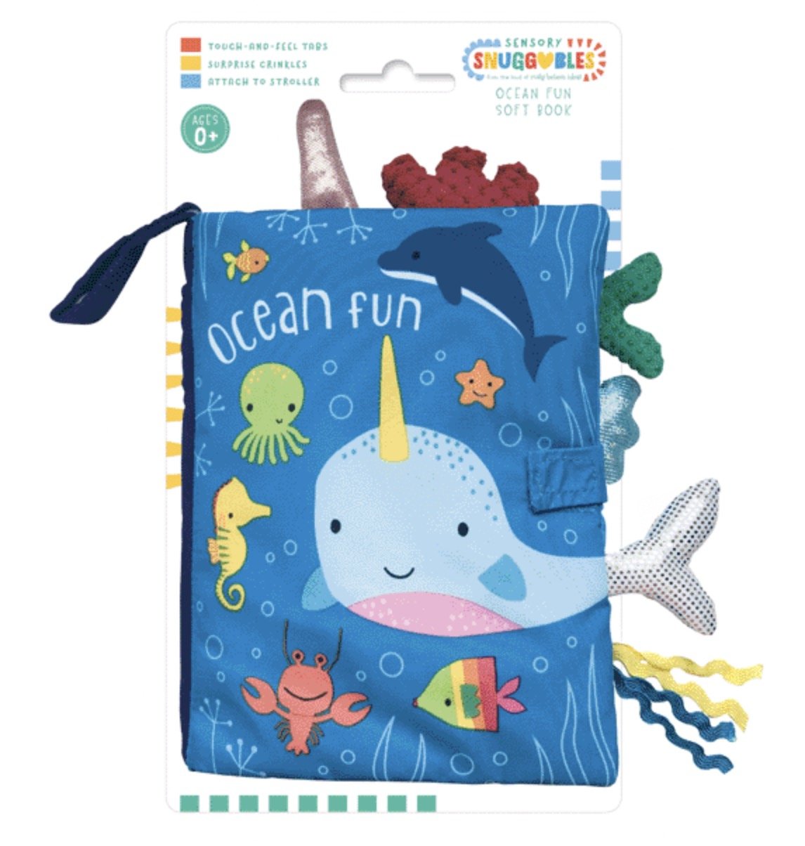 Meet the ocean friends in this adorable soft cloth book! Little hands will love exploring the crinkly cover and touch-and-feel tabs on every page, accompanied by brightly animated artwork to engage curious minds. Light-weight and portable for adventures on-the-go, this sweet addition to our Sensory Snuggables range is perfect for parents and children to enjoy together.