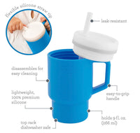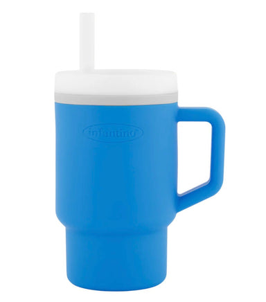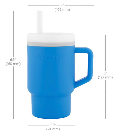 Meet the Infantino My 1st Tumbler, the perfect sidekick to keep your little one hydrated! This adorable 9oz tumbler is designed for babies who are just starting to sip on their own. Crafted from lightweight, 100% premium silicone, it's perfectly sized for tiny hands. The two-piece, leak-resistant straw includes a smart valve that ensures smooth liquid flow and prevents spills, even if the tumbler is turned upside down. The no-pull-out straw features a soft silicone tip, making it ideal for those initial precious sips. It also has a handle for easy carrying and fits most cup holders, so it’s always within reach. Cleaning is simple—disassemble and place it on the top rack of your dishwasher or handwash with warm, soapy water.
