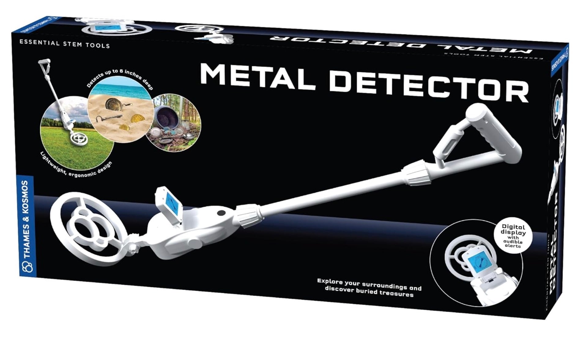 - HUNT FOR TREASURE! Kids ages 8 & up can search for metal objects like gold, silver, iron, copper, and more with this custom-tooled metal detector! Detects metal buried up to 6 inches deep in sand, dirt, or grass.
