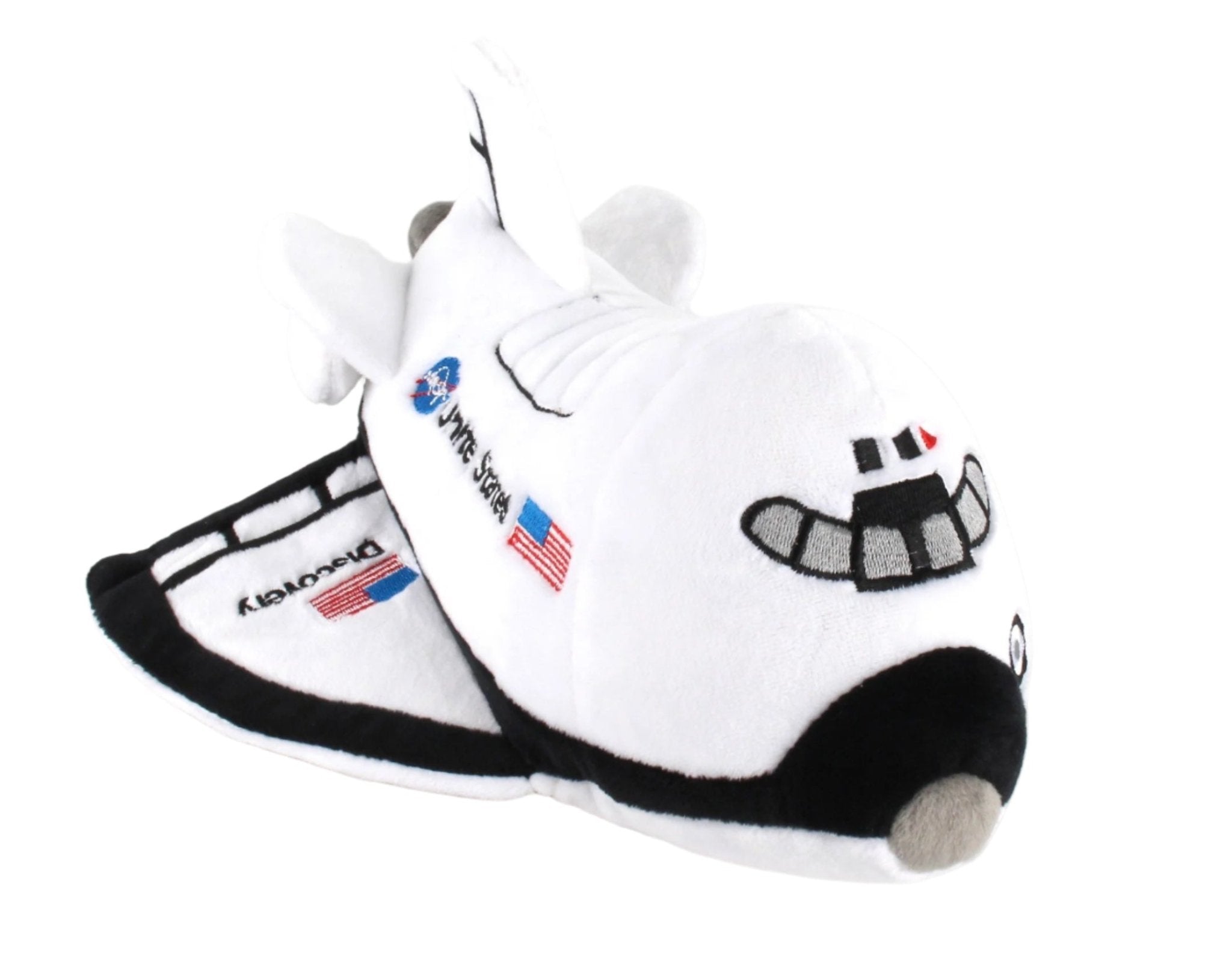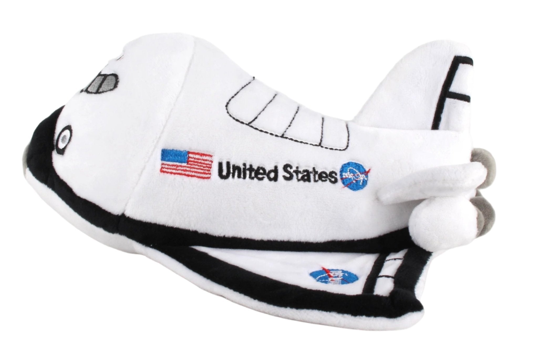 Comforting for any kid who simply wants to have a good friend close by, your child will love cuddling up with this Space Shuttle Plush Airplane. Manufactured by hand, The Plush Airplanes are easy to keep clean and can be hand washed with a sponge using light soap and water. Measures approximately 9" (L) x 9" (W) x 5" (H). Recommended for children ages 3 and up.