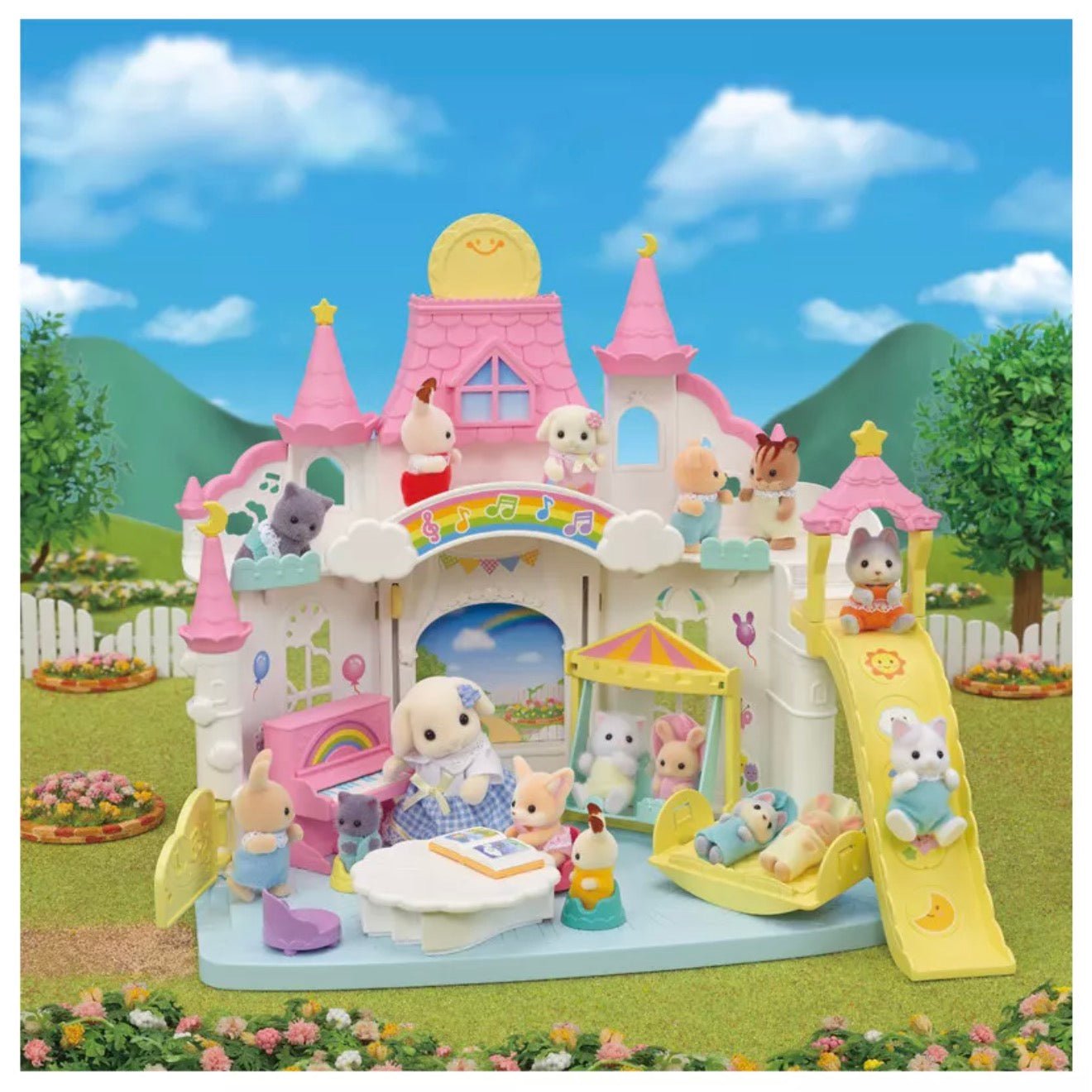 The Sunny Castle Nursery set contains a nursery with changeable weather and the Flora Rabbit Baby.
