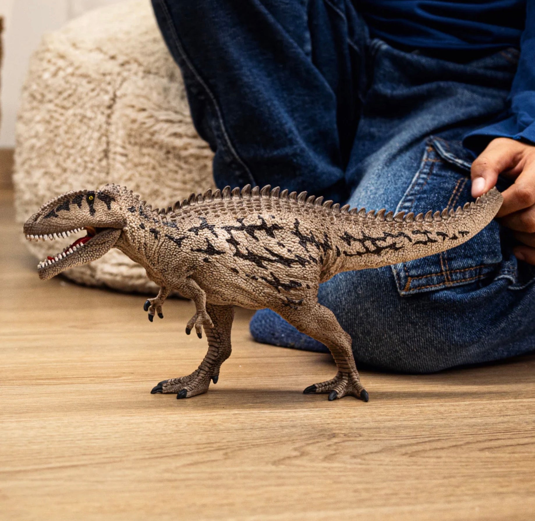 The Carcharodontosaurus is also known as the sharp-toothed lizard, which sums up this handsome dinosaur pretty well. It has two rows of extraordinarily sharp fangs in its movable jaw. The carnivore also needs them to dismember its prey. When it is hungry, it pursues its dinner persistently until he has snatched it. With its long hind legs, it’s quite fast when it comes to hunting. Best only meet up with the Carcharodontosaurus when it has already had its dinner!