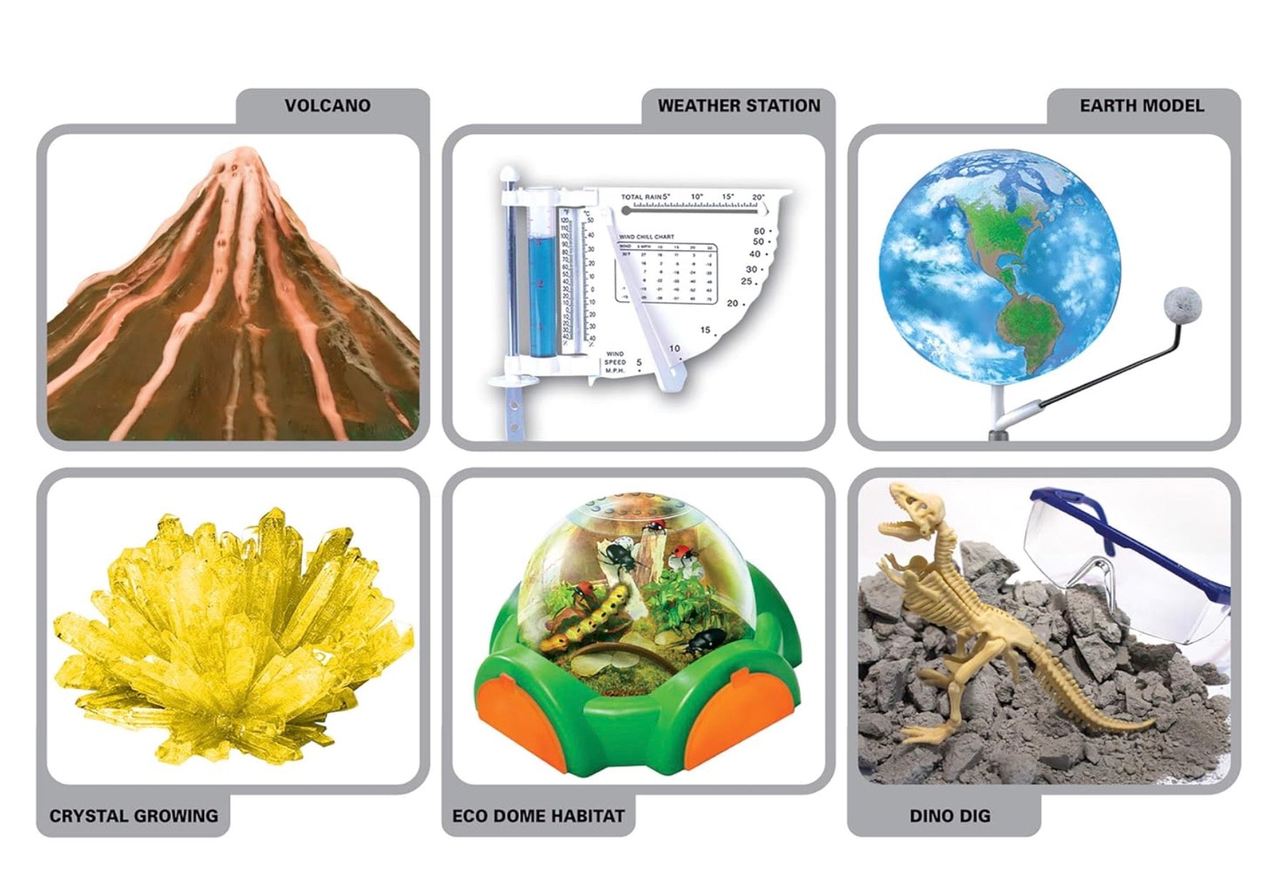 The Smithsonian Mega Science Lab has six STEM kits in one! Observe the process of crystal formation, assemble and paint a model of the earth and moon, and erupt your very own volcano. Create an Eco Dome Habitat where you can catch, collect, and study bugs. Assemble and install your weather station and start logging temperature, wind direction and speed, barometric pressure, humidity, clouds, and precipitation. Put on your safety goggles and chisel away at your sand block as you excavate bones that you can assemble into a model dinosaur.