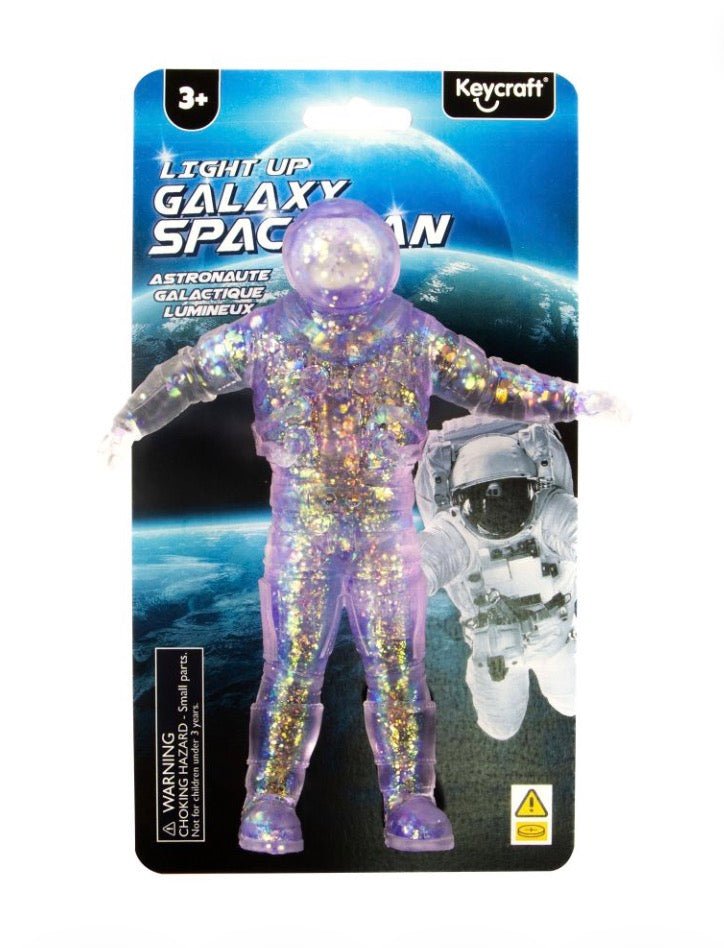Get ready for the ultimate space adventure with our mesmerising light-up galaxy spaceman. Stretch, squish and pull this tactile toy for a sensory experience like no other. Watch as the glitter dances and swirls around inside the spaceman toy providing a calming sensory experience. This sensory spaceman toy is perfect for merchandising by till points for the ultimate impulse purchase.