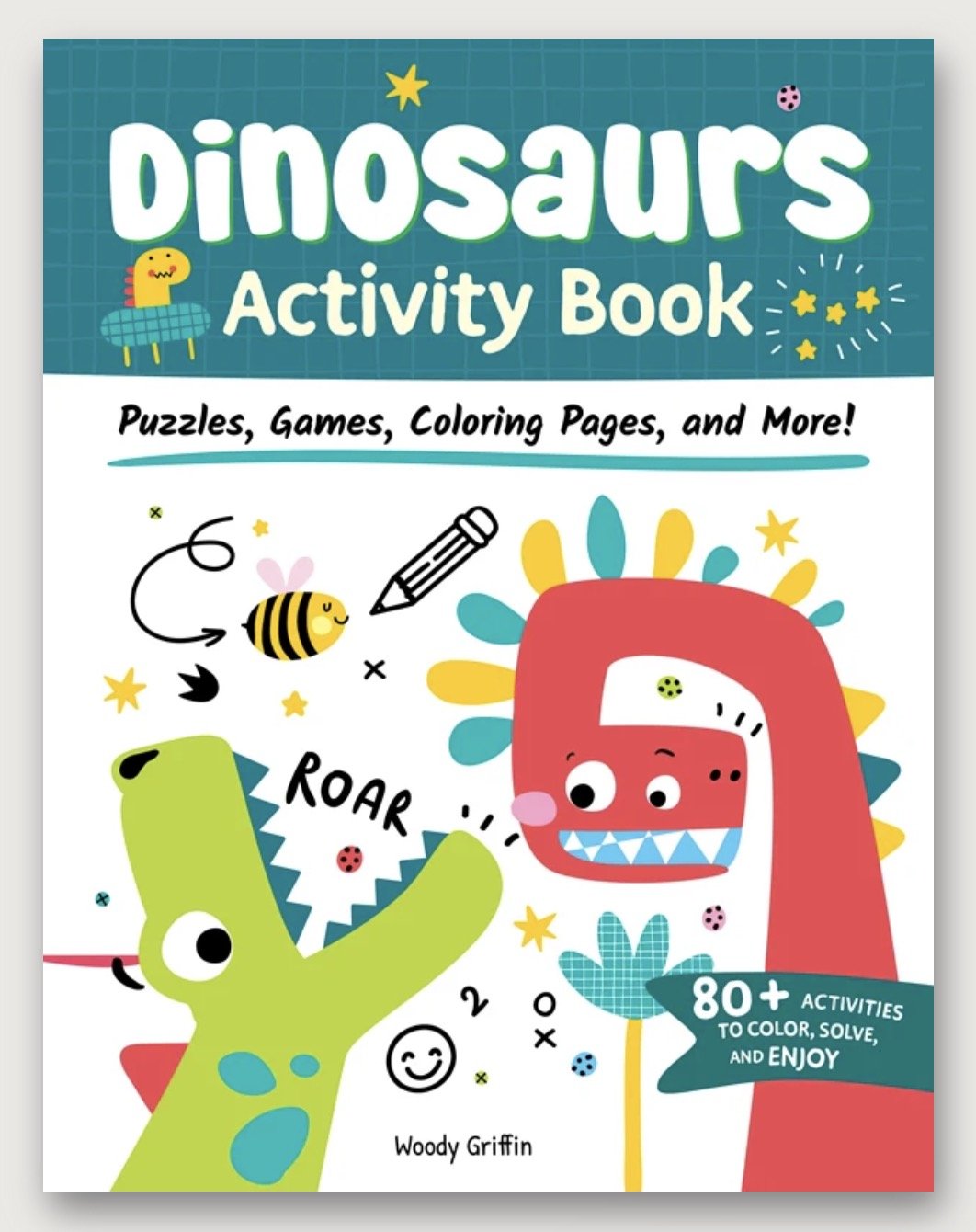 The Dinosaurs Activity Book is filled with 90 engaging and entertaining games and puzzles for children ages 6-10. Playful illustrations of silly dinosaurs, ice-cream cones, balloons, fruits, and veggies are showcased throughout. Games and puzzles include a simplified variation of Sudoku, labyrinths, seek-and-find, mazes, word searches, coloring page activities, spot-the-difference, find the shadow, and learn to draw. Perforated pages for displaying when complete.