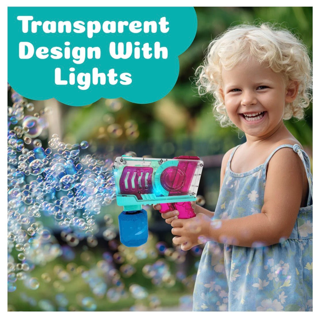 Our non-toxic bubbles vanish magically and wash off easily, ensuring hassle-free play. Ideal for kids 3 and up, it's a hit for birthdays, baby showers, and more! But wait, there's more! Cozmic adds a light display to bubble fun. Just load, click, and watch it glow as it blasts bubbles. Plus, it's portable and easy to use with 4 AA batteries. Get ready to dazzle with PoppinColorz!