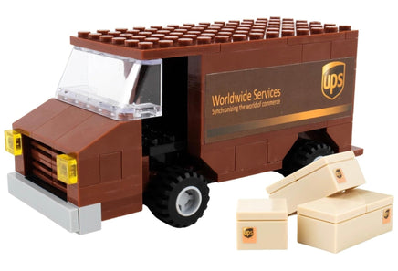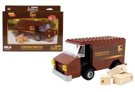 Materials & size: Made of durable plastic, the UPS Packaging Truck Construction Toy is compatible with other construction toys. Length measures approximately 5.5 inches long.