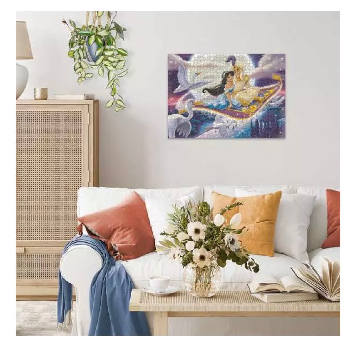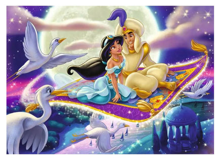 Discover a whole new world of puzzling fun as Aladdin and Jasmine soar through an endless diamond sky! Capturing a quintessential moment from Disney’s 1992 film Aladdin, the “street rat” (with the help of fun-loving Genie), has wished himself a prince to win the heart of Princess Jasmine. Little do they know the Sultan’s evil advisor, Jafar, plots to take over the kingdom! Just as Aladdin and Jasmine forge their bond among the clouds, you’ll be bound to enjoy puzzling their soaring adventure!