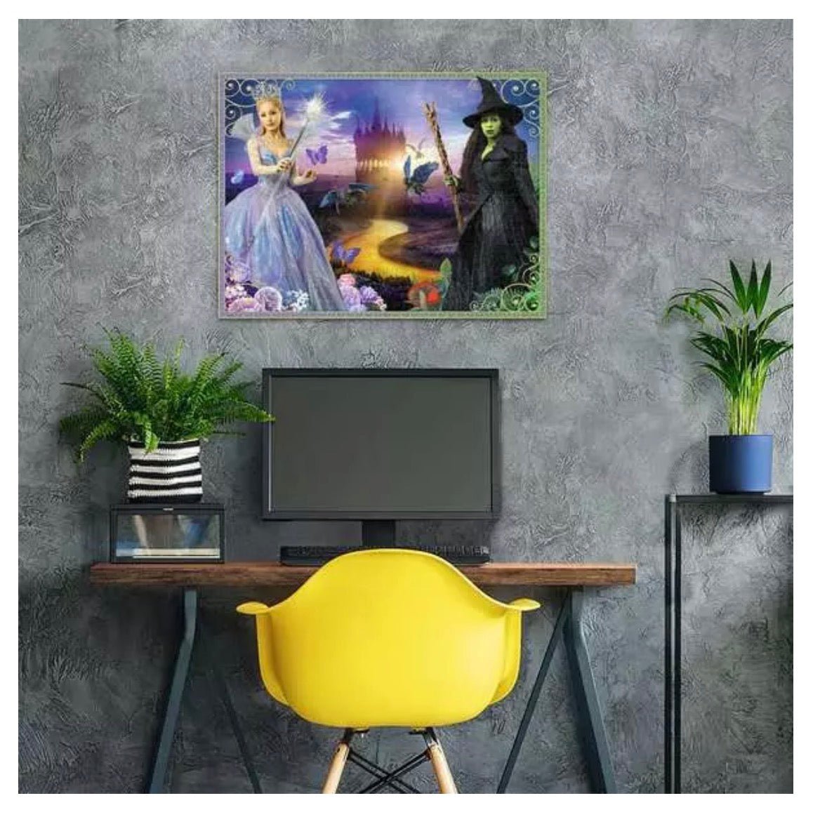 Step into the enchanting world of Wicked with this striking 1500-piece puzzle featuring both Elphaba and Glinda. The artwork captures their iconic friendship and contrasting destinies, offering fans a magical puzzling experience.