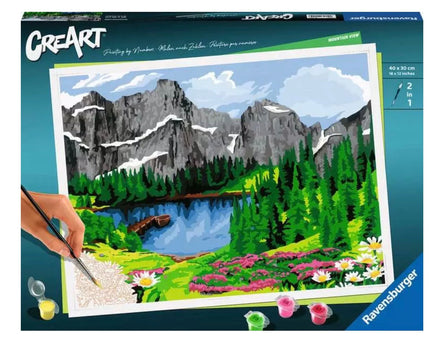 Picture yourself sitting on the dock with a spectacular “Mountain View” and enjoy hours of soothing fun with this CreArt paint-by-number kit! Treat yourself to relaxing “me time”, with everything you need included. Simply fill in each clearly numbered section and watch the image emerge! The prepared patterns and high-quality, odorless acrylic paints ensure excellent results as you create your personal masterpiece. De-stress and find success as you discover the joy of art in your heart today!
