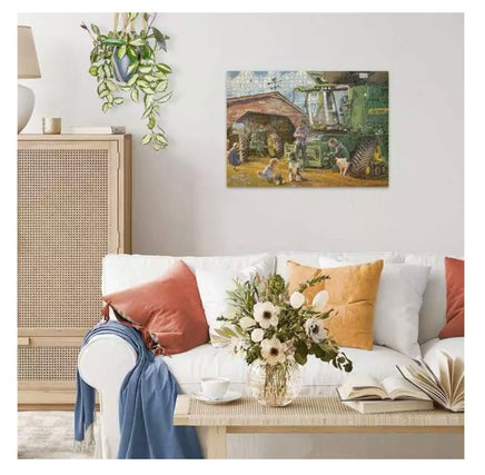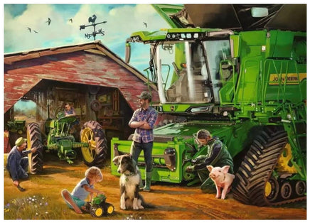 Generations of farmers have depended on their equipment to get the job done, and John Deere continues to innovate to help them reach their goals. In our rustic-meets-modern-day scene, both the classic Model A (introduced in 1934), and the cutting-edge X9 Combine Harvester get the same tender loving care. Times have changed, but helping farmers maximize profits and productivity has always been at the heart of John Deere. A fun puzzle for your family to piece together in the heart of your home!