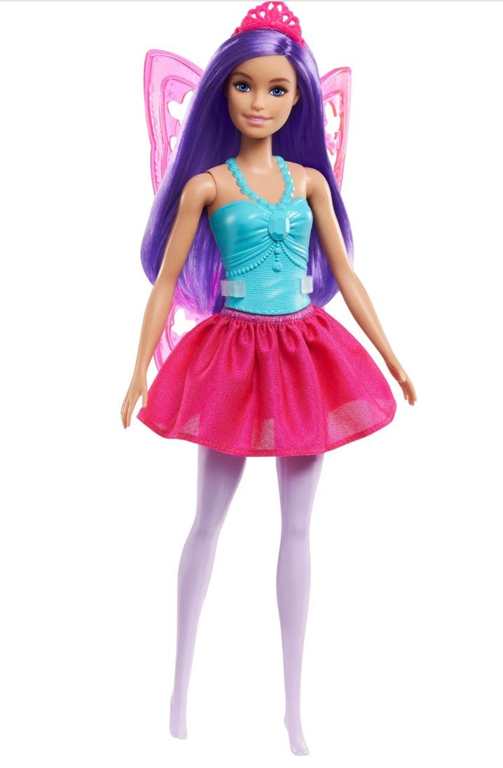 Soar into storytelling with fairy dolls from Barbie™ Dreamtopia! Each Barbie® fairy doll inspires enchanted adventures in a gem-inspired bodice, painted-on tights and a fairy skirt that's removeable for fashion fun. Colorful clip-on fairy wings with sweet butterfly cut-outs help imaginations take flight, and a tiara in each Barbie® doll's vibrant hair puts the finishing touch on her fantastical look. With dreamy looks and details, these Barbie™ Dreamtopia dolls make great gifts for fairytale lovers ages 3 to 7 years old.