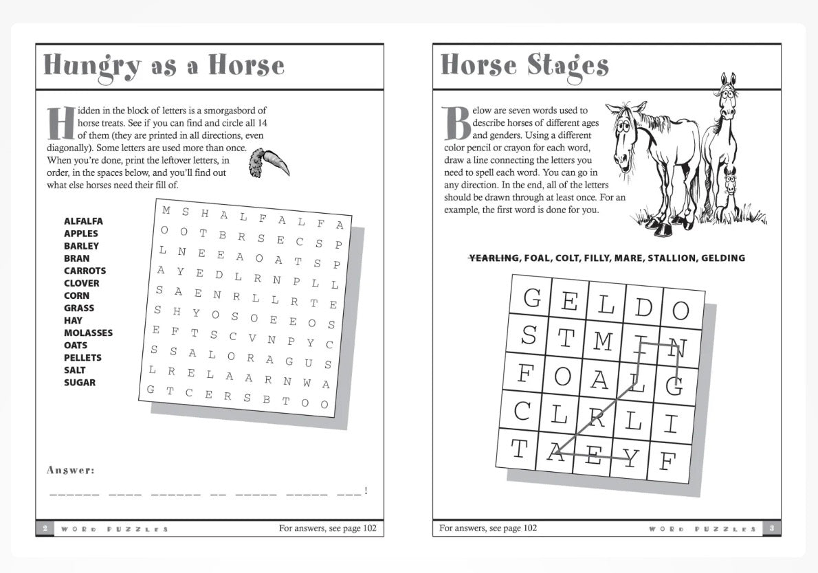 Cindy A. Littlefield presents 102 brainteasers, word games, jokes, riddles, and puzzles that will keep horse-crazy children entertained for hours. Packed with fascinating bits of equine trivia and plenty of illustrations, this book will jumpstart kids’ creativity and boost their problem-solving skills, while at the same time teaching them about their favorite animals. Get ready for some serious horsing around.