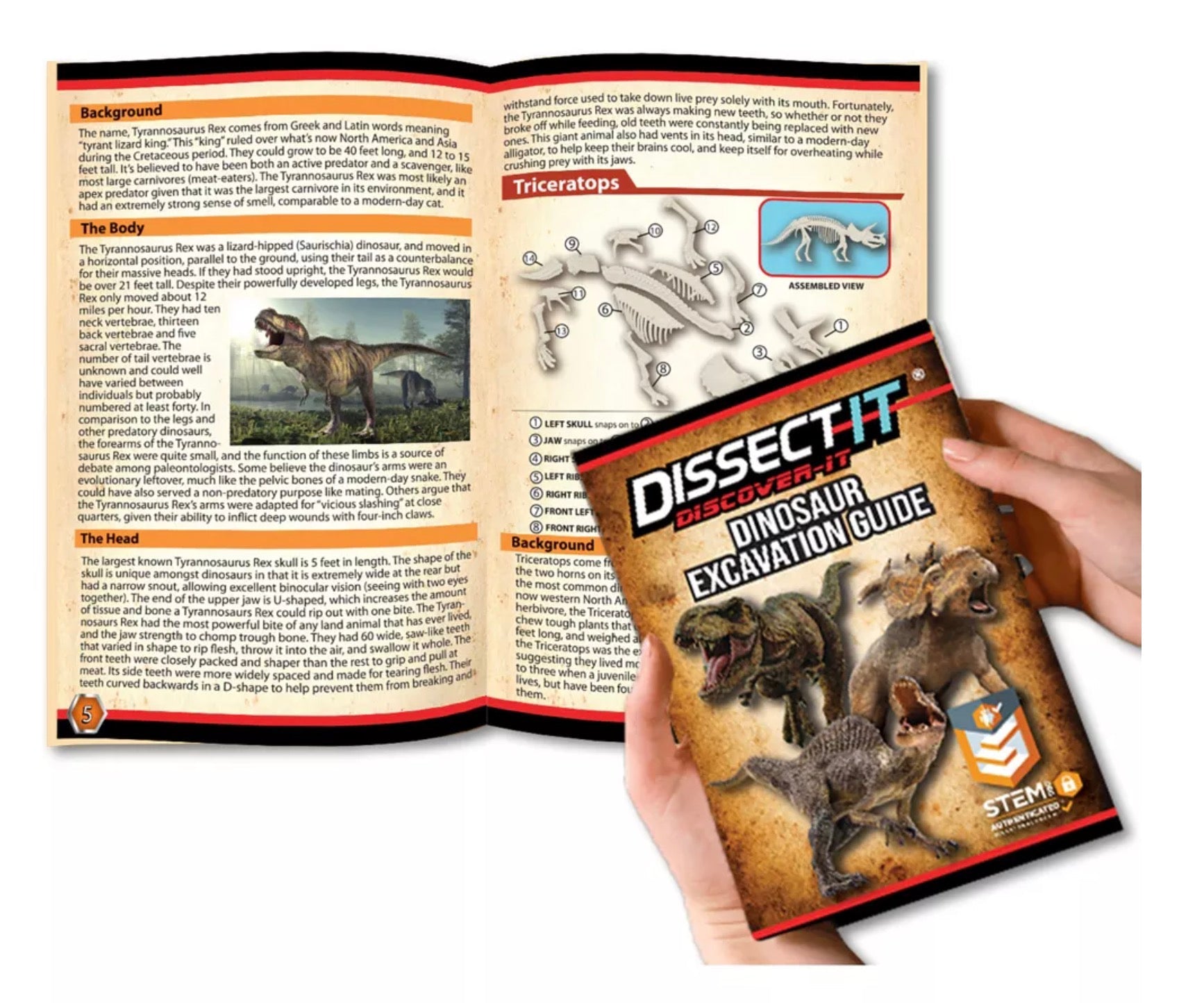 LEARN INTERESTING FACTS: Detailed Excavation Guide teaches about dinosaurs and their skeletal structures.