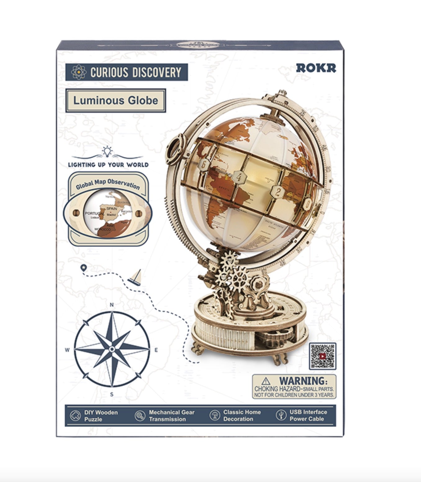 The Luminous Globe is not only a classically sophisticated globe ornament but also a practical night light with a warm glow for your room. Assembly time: 2 hours. 180 Pieces