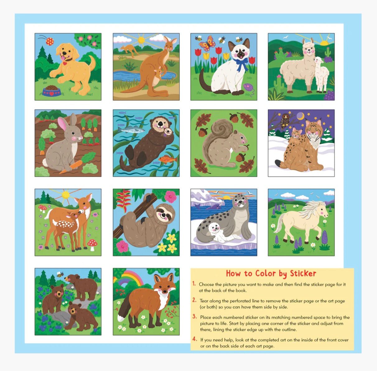 • Sticker book comes with 14 simple animal-themed scenes to ''color'' with the stickers provided.