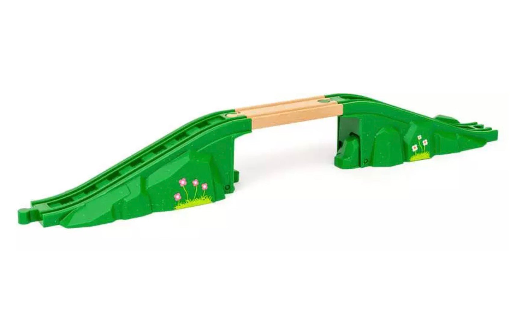 Arch Bridge includes 3 pieces: 2x Arch Bridge Pieces, 1x Wooden Track.