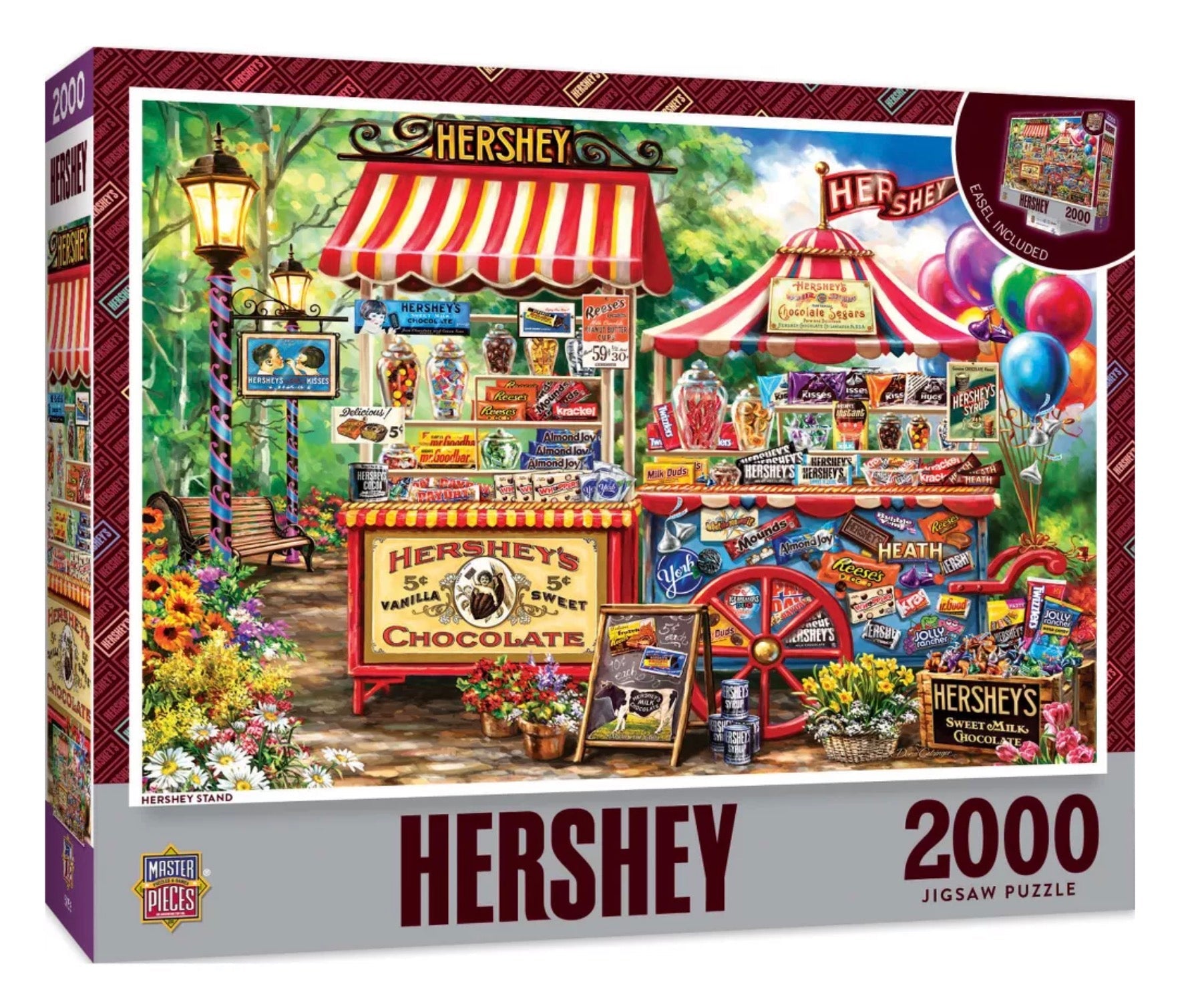 This 2000-piece puzzle is a vibrant celebration of all things Hershey's, featuring a colorful outdoor candy stand filled with nostalgic treats. The scene is bursting with vintage charm, showcasing classic Hershey's bars, Reese’s, Almond Joy, Kisses, and more iconic sweets displayed on beautifully decorated carts. Balloons float above the scene, while flowers and bright signage add to the lively, festive atmosphere. The details are rich with candy wrappers, jars of treats, and vintage advertisements, creating a challenging and delightful puzzle experience for anyone with a sweet tooth or a love for nostalgic candy shop vibes. Perfect for chocolate lovers and puzzle enthusiasts alike, this puzzle is sure to bring hours of enjoyment as you piece together this whimsical candy stand. Puzzles with 2000 pieces or more are crafted using multiple die-cutting machines, allowing us to create large, intricate puzzles with stunning detail. Due to the complexity of the process, slight variations in alignment may occur, giving each finished puzzle its own unique character and charm—making it a truly one-of-a-kind experience for enthusiasts.