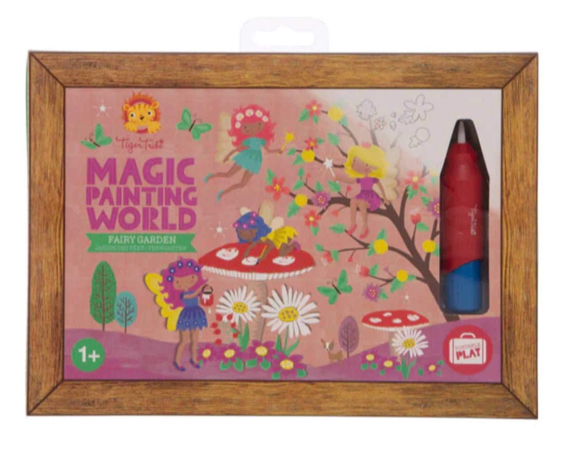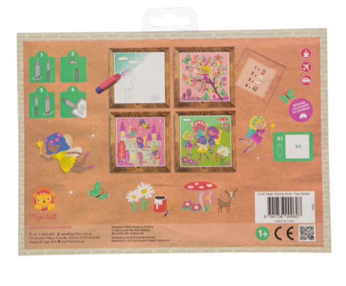 Watch as your little ones become magical artists with Tiger Tribe's Magic Painting World Fairy Garden. Fill your magic paintbrush with water and reveal the illustrations brought to life with every brush-stroke! Ideal for portable play, each set contains 4 paintings for you to discover with your water-brush that can be revealed time and time again when your scene dries, it returns to white, hiding your magic world so you can keep playing over and over again. Each illustration board has things for you to find and count as you paint, providing hours of fun!