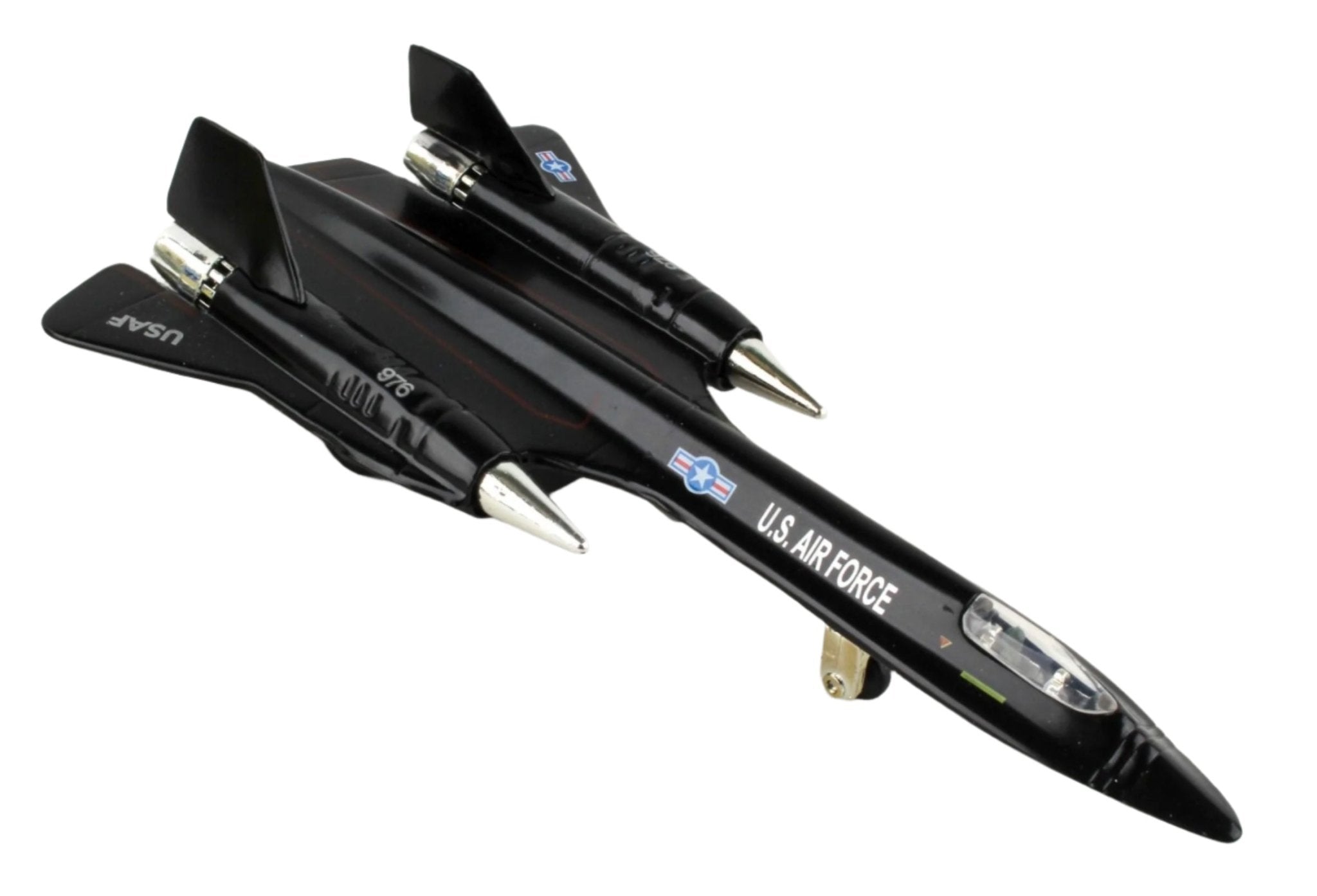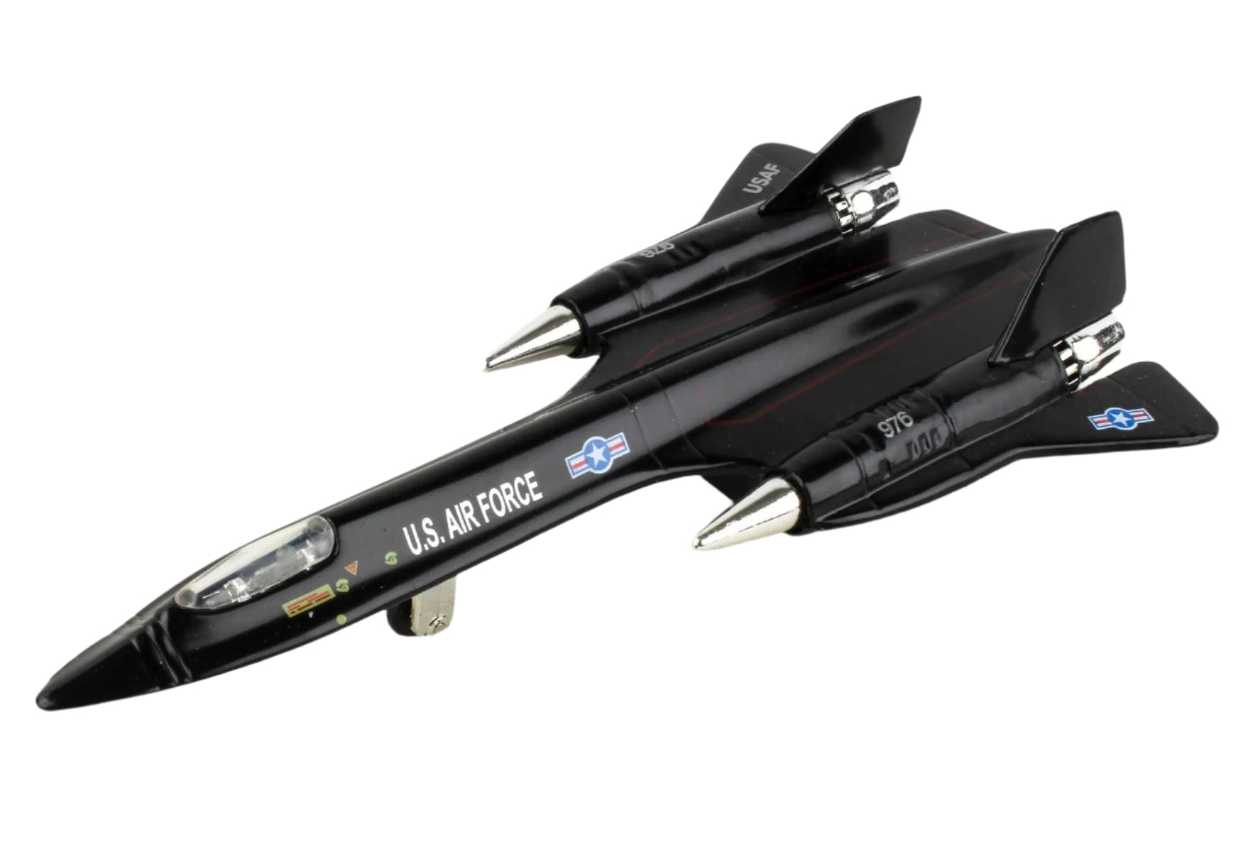 Get ready for takeoff with the SR-71 Blackbird Pullback! This diecast jet features a pullback function for realistic speed and a sleek design inspired by the iconic US Air Force SR-71 Blackbird. Perfect for aviation enthusiasts and collectors alike. (Prepare for liftoff with this playful and sleek SR-71 Blackbird Pullback jet, complete with a pullback function and realistic design.)