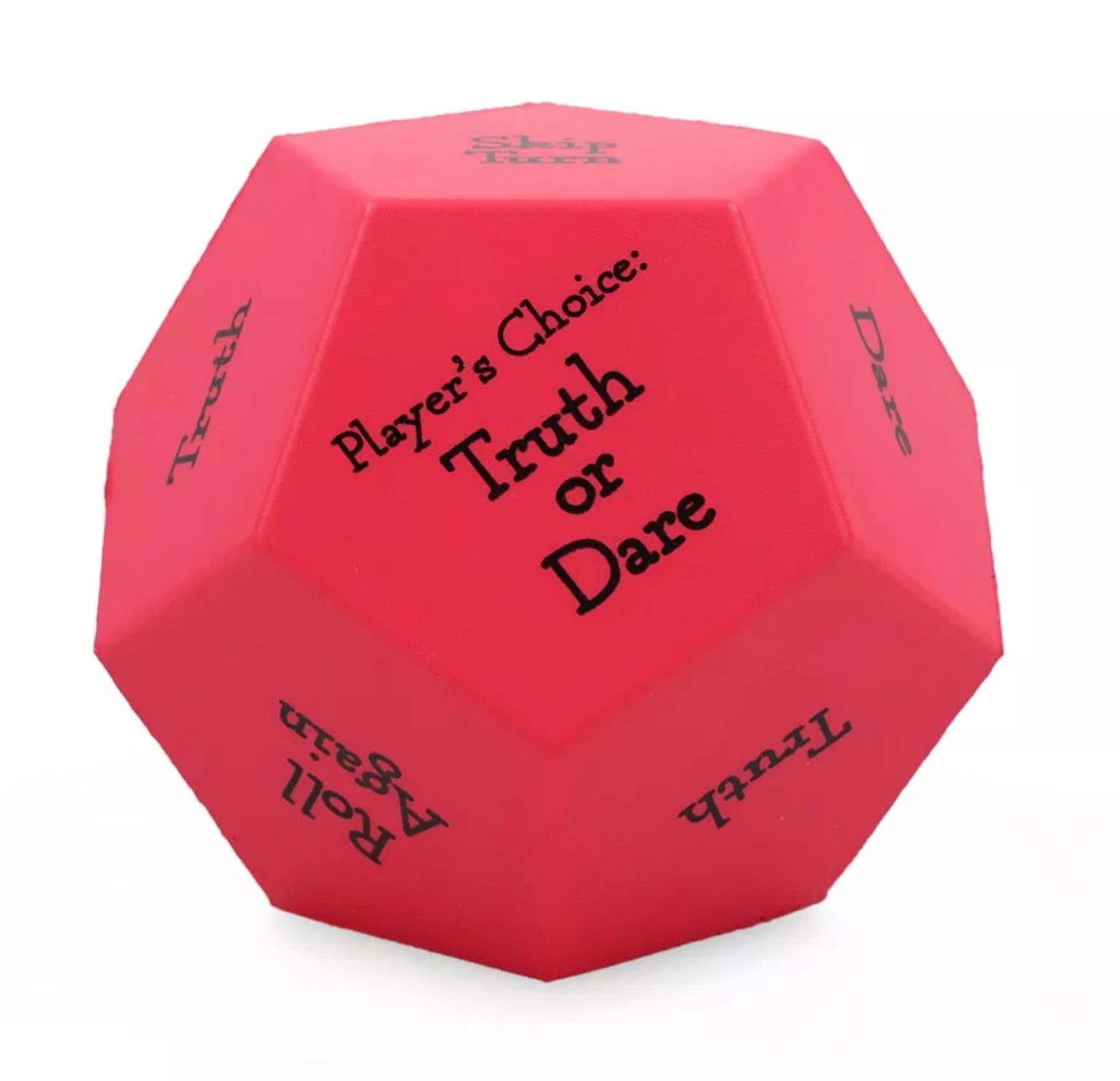Have some fun with this expanded version of the classic game, Truth or Dare. In our version, Truth or Dare are not your only options. There are 10 other possibilities with our 12-sided 4" foam die. Roll it and follow the command. It might say Skip a Turn, Roll Again, Players Choice or even Truth or Dare! It's all up to the die with this fun, revealing, and sometimes embarrassing take on the classic Truth or Dare game.